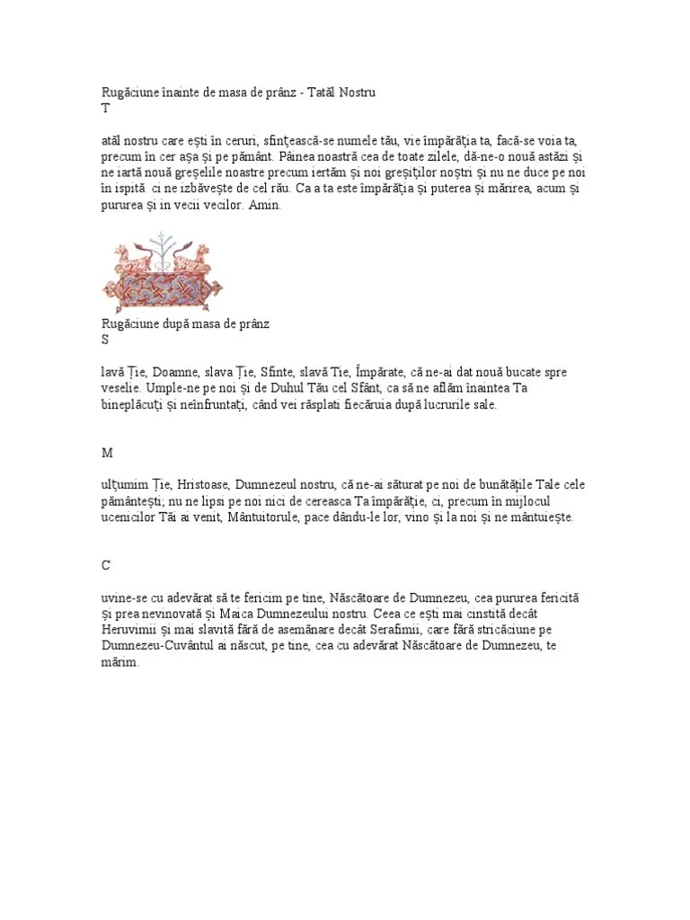 Nu ne lăsa lipsiți nici de cereasca ta împărăție;.. Ca a ta este imparatia si. About press copyright contact us creators advertise developers terms privacy policy & safety how youtube works test new features press copyright contact us creators. Rugăciune înainte de masa de dimineață: Suntem datori lui dumnezeu sa facem rugaciune la masa de pranz.. Rugăciunea după masa de dimineață și prânz.